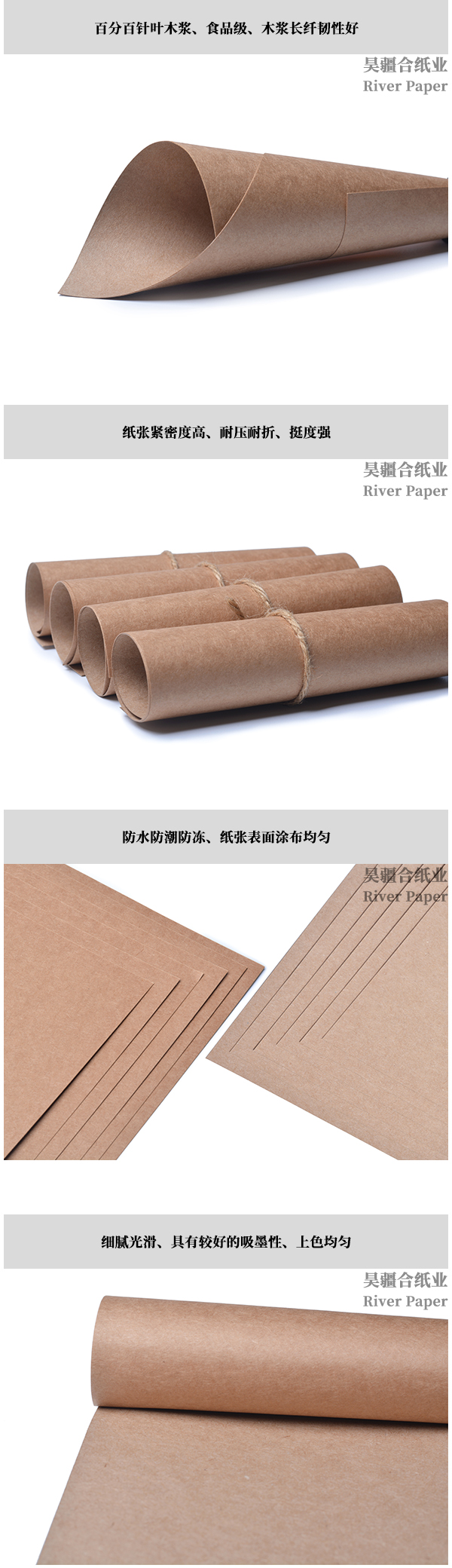 產(chǎn)品材質(zhì):百分百高緯度針葉純木漿,原漿,長(zhǎng)纖維,長(zhǎng)網(wǎng)機(jī)制作。  昊疆合牛皮紙